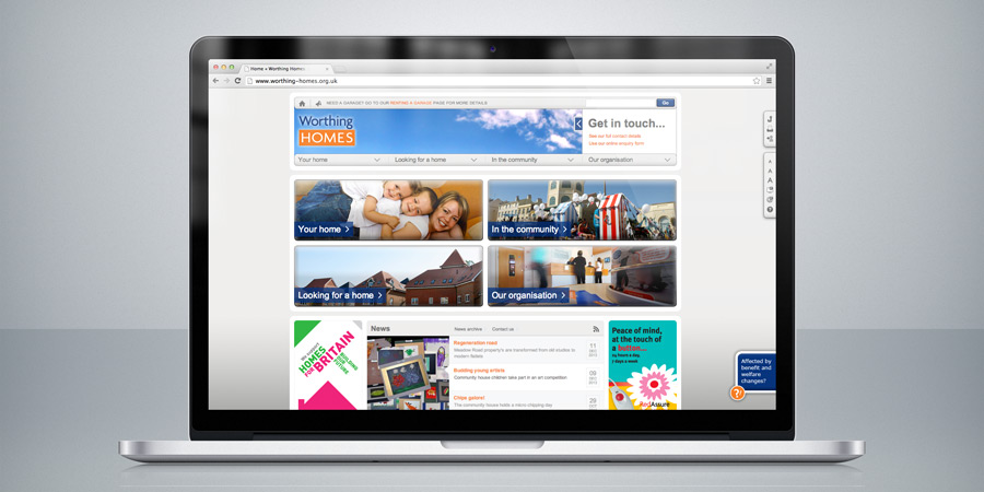 Design, communications and marketing for Worthing Homes, one of the region’s largest housing associations Worthing Homes, serving 10,000 customers in the Sussex coastal area.